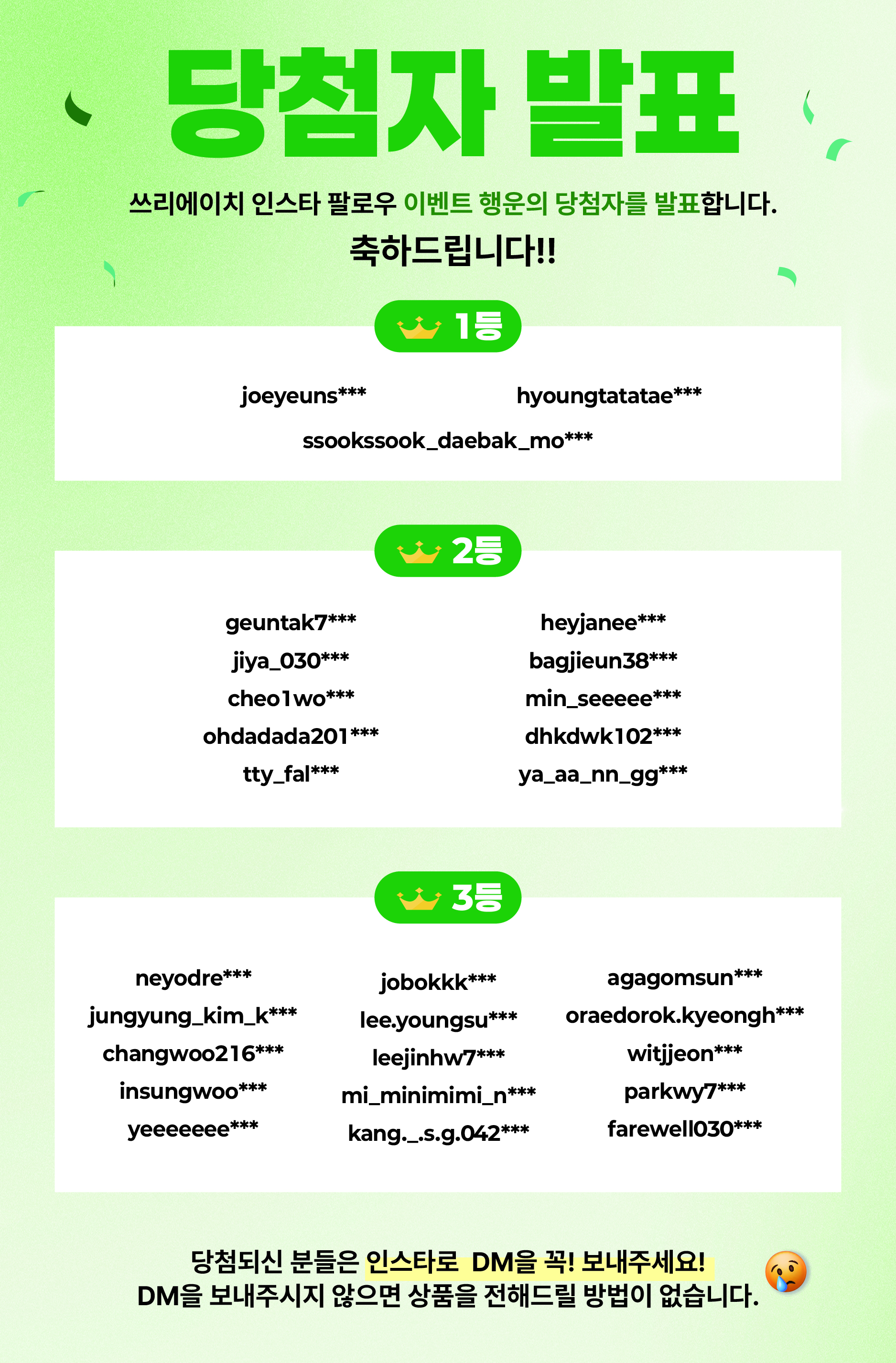 ※ 당첨자는 반드시 홈페이지에서 직접 확인 후 DM을 보내주셔야 합니다.